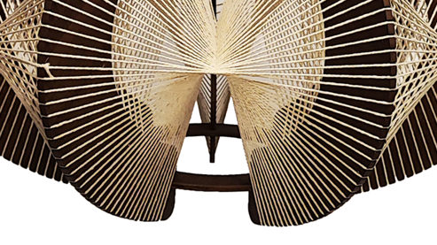 naturfarbene Hanfschnur, dunkel holzfarbenes MDF und mattschwarzes Metall