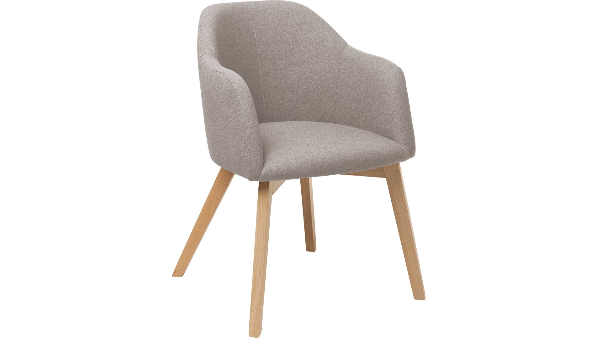 Das steinfarbene Leder und die Holzfüße in Eiche Bianco machen dieses elegantes Sitzmöbel zu etwas ganz Besonderem. Und so macht der Polsterstuhl mit den Maßen von ca. 55 x 98 x 60 cm (BxHxT) als Flurmöbel, im Gästezimmer oder als Schlafzimmermöbel solo eine gute Figur. Zu mehreren stellen Sie den Armlehnstuhl mit hübschen Ziernähten rund um Ihren Esstisch in der Küche oder im Wohnzimmer.