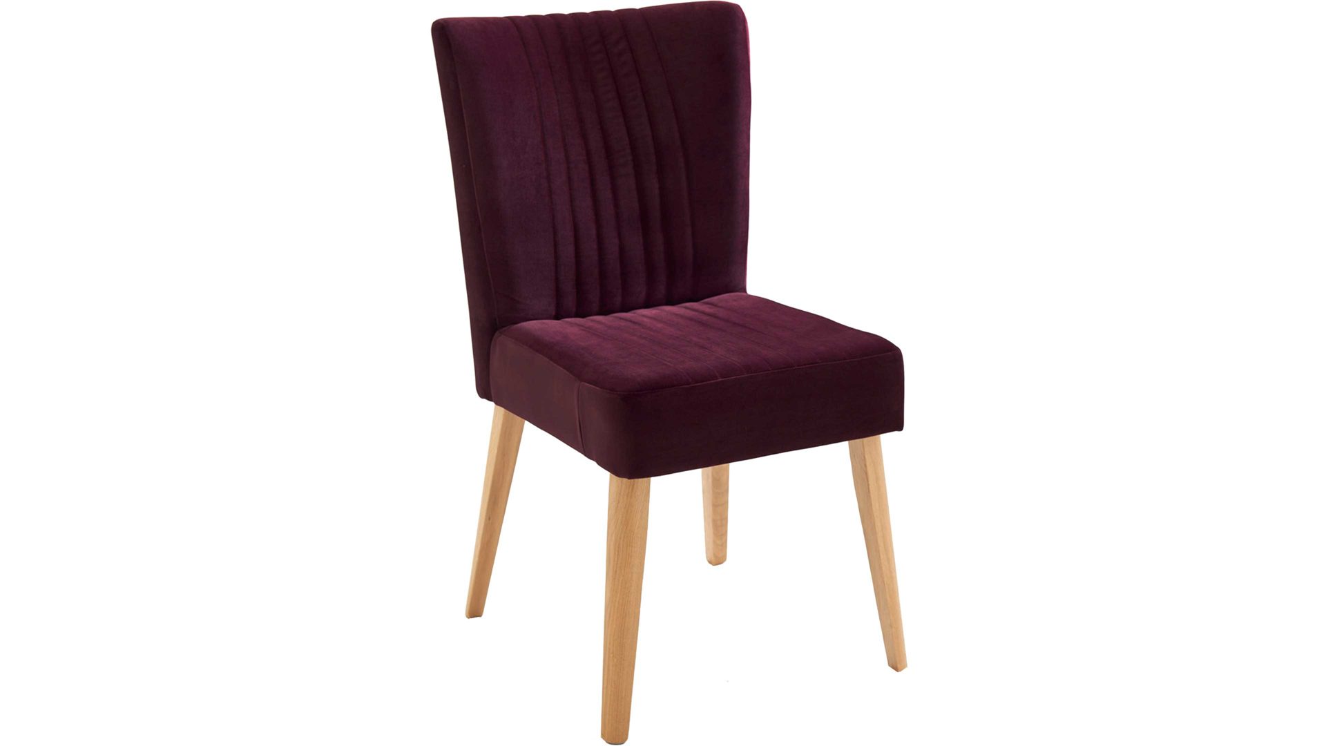 Sie lieben Rotwein? Dann ist dieser komfortable Polsterstuhl mit einem weichen, chiantifarbenen Bezug im Samtlook genau das Richtige. Raffinierte Steppnähte, die auf Sitz und Rücken angebracht sind, verleihen diesem Sitzmöbel eine interessante optische Note. Stellen Sie diesen funktionalen Polsterstuhl mit den praktischen Maßen von ca. 46 x 92 x 66 cm (BxHxT) am besten an einen Esstisch aus Eiche, denn das Holzgestell des Stuhls besteht ebenfalls aus Eiche natur.