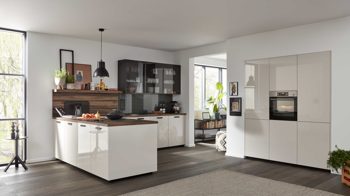 mit Demischrank für vollintegrierten Kühlschrank und Hochschrank für hochgebauten Backofen
