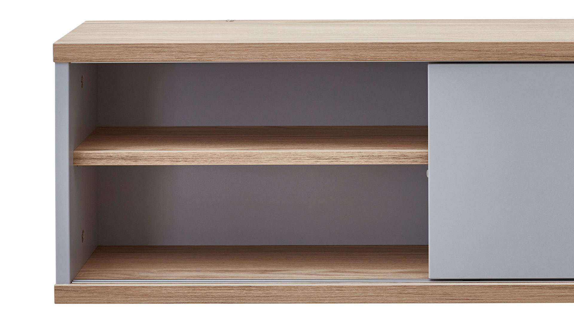 Funktional überzeugt das erstklassig verarbeitete Regal mit einem großen Fach rechts sowie einem durch einen Einlegeboden unterteilten Bereich linksseitig. Die praktische Schiebetür lässt sich komplett von links nach rechts durchschieben. Es steht demnach offener und halbgeschlossener Stauraum für verschiedene Gegenstände zur Verfügung, etwa Spielsachen, Bücher und Zeitschriften, Fotoalben, CDs, DVDs und Blu-Rays oder andere Utensilien, die entweder vor Licht und Staub geschützt oder dekorativ sichtbar aufbewahrt werden sollen. Auf ca. 86 x 29 x 20 cm (BxHxL) belaufen sich die Maße des praktischen Regalelements.