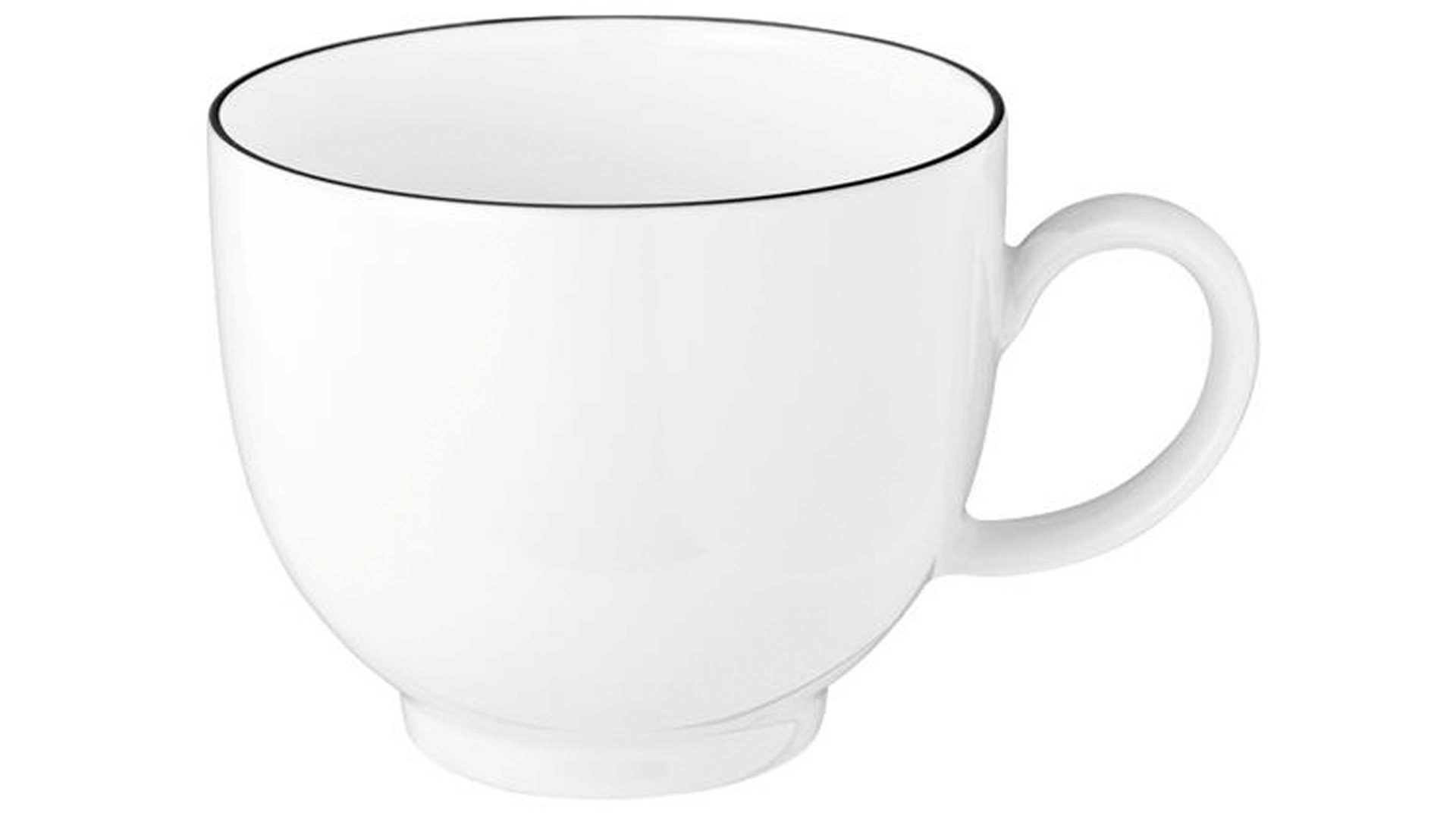 Das 18-teilige Kaffeeservice Lido von Seltmann setzt sich aus sechs Frühstückstellern, sechs Untertellern und sechs Kaffeetassen zusammen. Jeder Frühstücksteller hat einen Durchmesser von ca. 20 cm; bei den Untertellern beläuft sich der Durchmesser auf ca. 15 cm und die Kaffeetassen gehen mit einem Fassungsvermögen von ca. 0,2 Litern einher. Alle Teller und Tassen sind aus hochwertigem, weißem Porzellan hergestellt. Dessen stilvolle Optik sorgt in Kombination mit der feinen schwarzen Linie im Bereich des Teller- beziehungsweise Tassenrands für eine durch und durch elegante Erscheinung, die den Esstisch ziert.