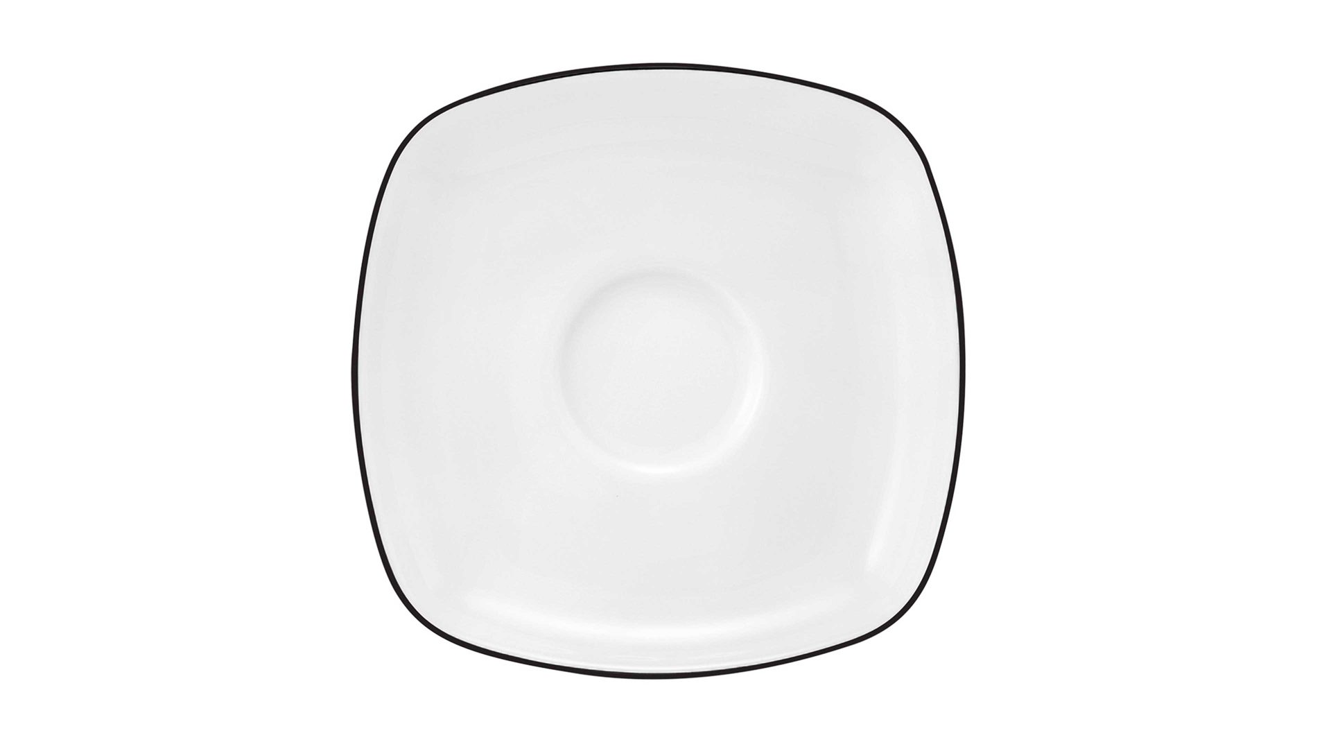 Seltmann Lido | eckiger Teetassen-Unterteller | weißes Hartporzellan mit filigranem schwarzen Rand | spülmaschinenfest | mikrowellengeeignet | stapelbar | backofenfest | Durchmesser ca. 14 cm | Maße ca. 14 x 2 x 14 cm (BxHxL) | Made in Germany | individuell kombinierbare Geschirrserie