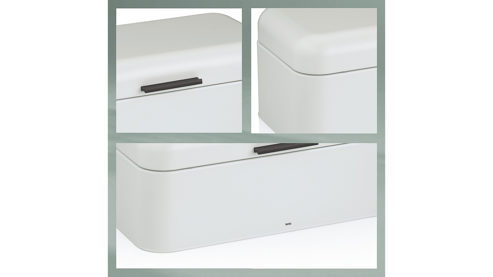 Dieser kompakte und stilvolle Brotkasten Frisca mit einer Länge von 30 cm hält Ihr Brot länger frisch und fügt sich perfekt in jede Küche ein. Dank der clever platzierten Luftlöcher an der Rückseite des Deckels bleibt die Luftzirkulation optimal, während die rutschfesten Gummifüße für einen sicheren Stand sorgen. Der Deckel schließt durch Gumminoppen besonders leise und sorgt für eine angenehme Handhabung. Erhältlich in modernen Trendfarben, lässt sich der Brotkasten ideal mit weiteren Accessoires von kela kombinieren – für eine harmonische und funktionale Kücheneinrichtung. Farbe: weiß. Abmessungen ca. 30 x 17 x 18 cm (BxHxT)