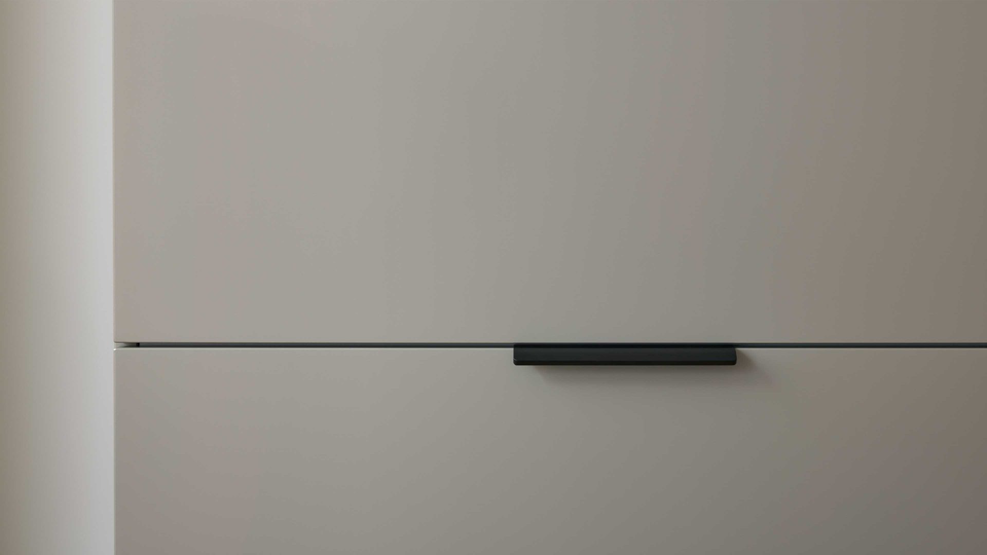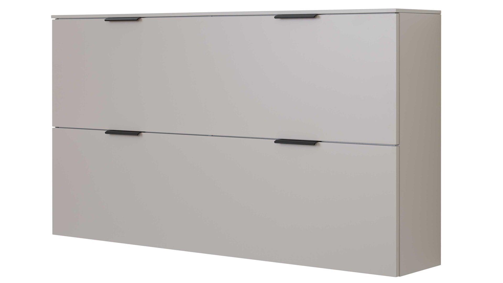 Die Kombination aus graubeigem Mattlack und mattschwarzen Metallgriffen verleiht dem Flurschrank einen edlen, zeitgemäßen Look, der sich harmonisch in verschiedenste Wohnstile einfügt – ob als Einzelstück oder als Teil eines abgestimmten Garderobenmöbel-Sets.