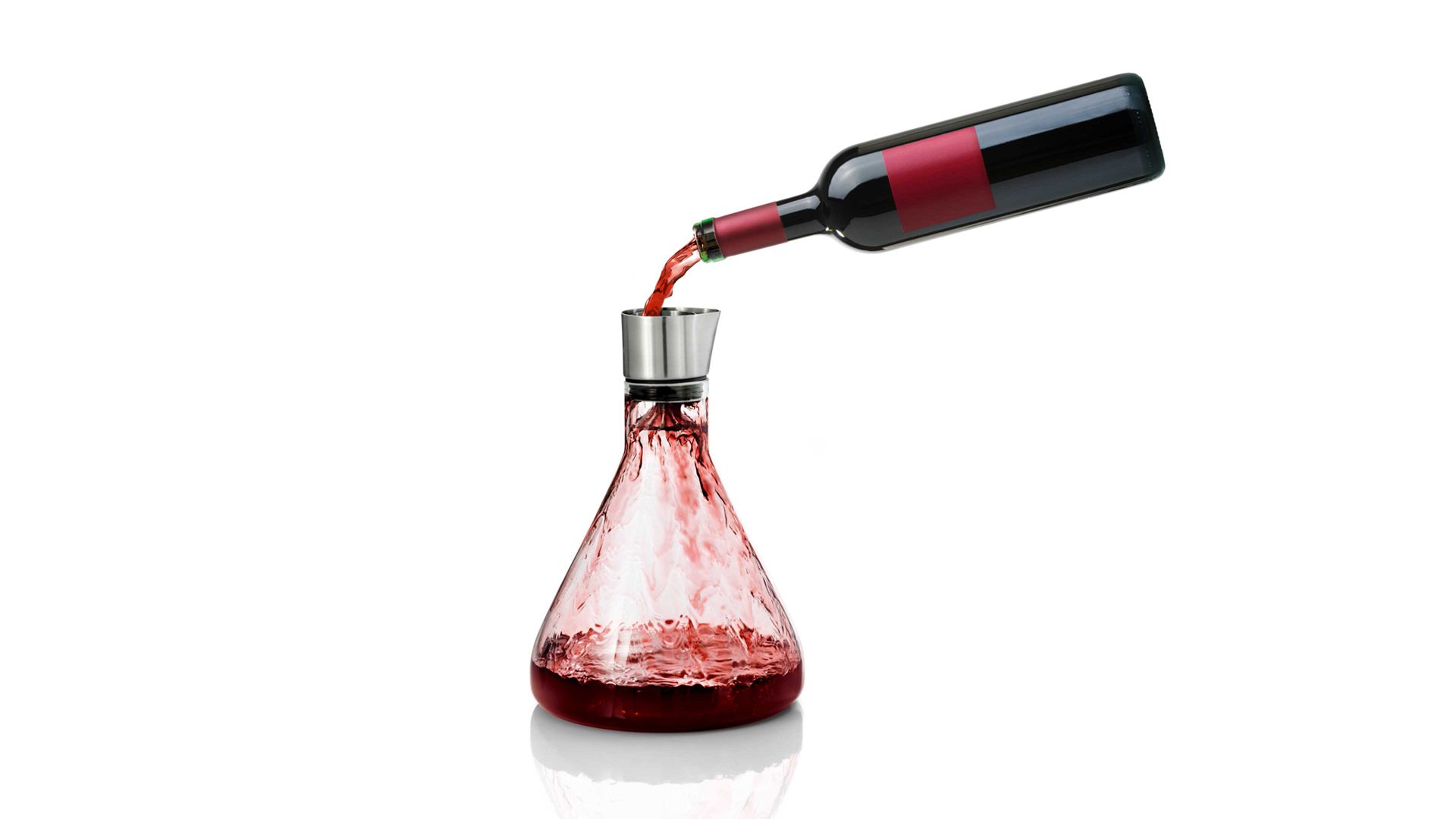 blomus Dekantierkaraffe Delta | Klarglas | matter Edelstahl | Silikondichtung | mit integriertem Sieb – perfekt zum Lüften und Filtern | tropffreies Ausgießen | organische Form mit Daumenmulde für gute Handhabung und komfortables Eingießen | Höhe ca. 28 cm, Durchmesser ca. 18 cm | spülmaschinengeeignet | reddot award