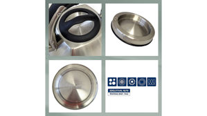Silberner Wasserkessel mit Pfiff: der Wasserkessel Vitus aus 18/10 Edelstahl. Durch die große Grundfläche eignet er sich zum schnellen und energiesparenden Wasserkochen. Kocht das Wasser, ertönt ein Pfeifton. Er ist zudem gut zu handhaben, da der Klappmechanismus zum Öffnen des Deckels in den Griff integriert ist. Der Wasserkessel ist für alle Herdarten geeignet, auch für den Induktionsherd. Der Wasserkessel hat einen Durchmesser von ca. 22 cm. Volumen 2,4 Liter. Farbe: silber matt
