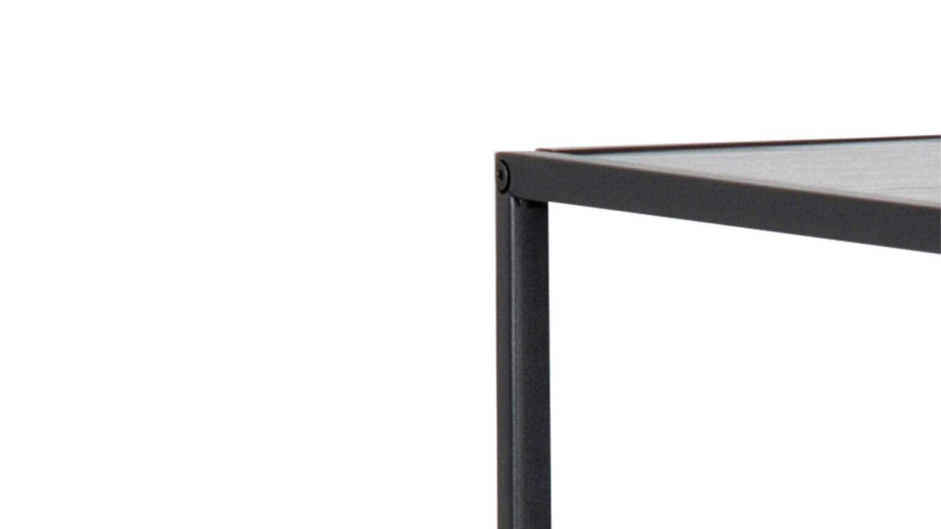 Die Regalböden in schwarzer Esche-Nachbildung verleihen dem Standregal ein modernes Aussehen. Sein schwarz pulverbeschichtetes Stahlgestell mit rauer Oberfläche rundet das auffällige Design des Wohnzimmermöbels optimal ab. Auf zwei großzügigen Böden und in vier verschieden großen Fächern findet alles Platz, was Sie immer im Blick haben möchten.