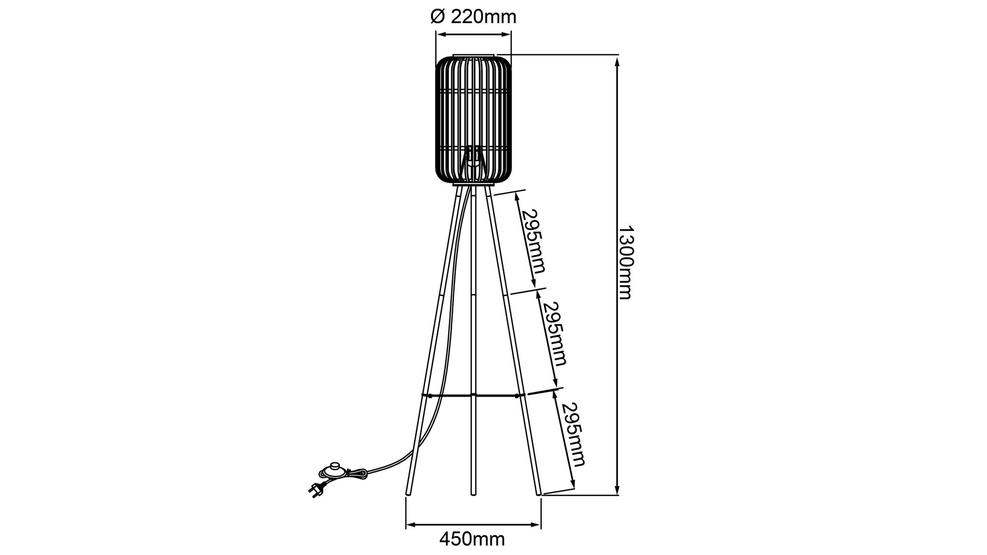 Details schwarze Metall-Lampenfüße hellbrauner Bambus-Lampenschirm Schnurschalter     Maße ca. 45 x 130 cm (B x ...