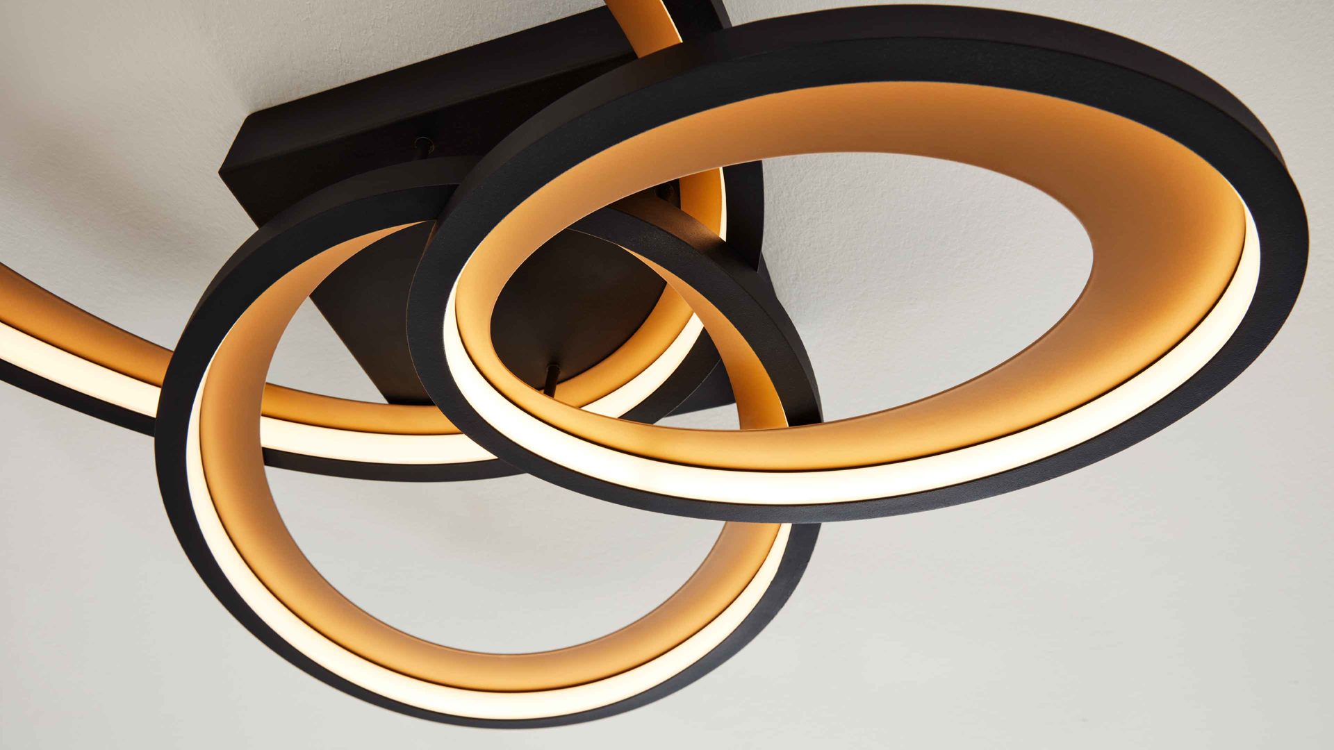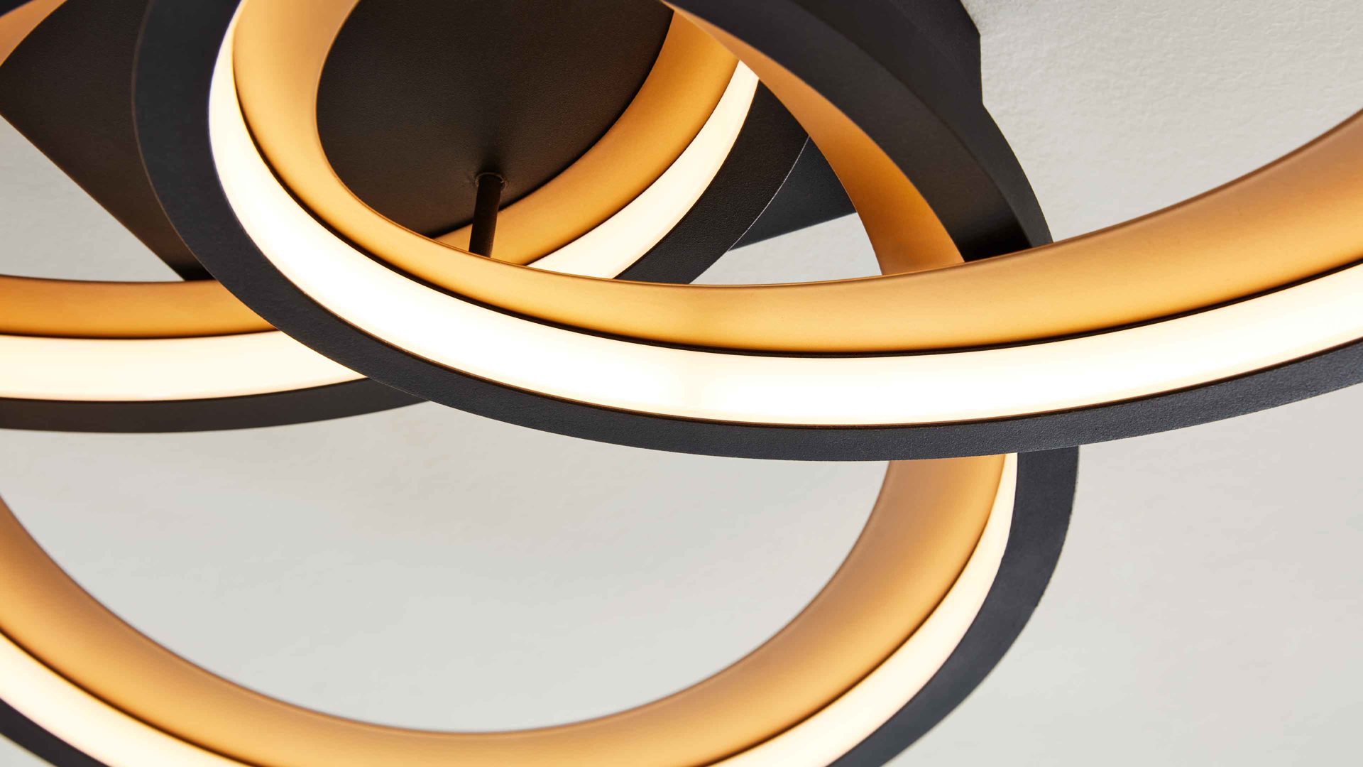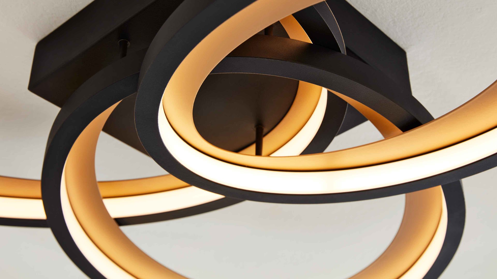 Die stilvolle Wohnraumlampe aus der Interliving Leuchten Serie 9337 bringt Bewegung und Dynamik in dein Zuhause. Das Zusammenspiel aus mattschwarzem Metall, matter Gold-Nachbildung und weißem Acrylglas sorgt für einen spannenden Kontrast – elegant, modern und mit einem Hauch futuristischem Design. Durch ihre markante, geometrische Form wird sie zu einem echten Blickfang an deiner Zimmerdecke. Mit Maßen von ca. 69 x 11 x 60 cm (B/LxHxT) wirkt sie kompakt, aber dennoch ausdrucksstark und stilprägend.