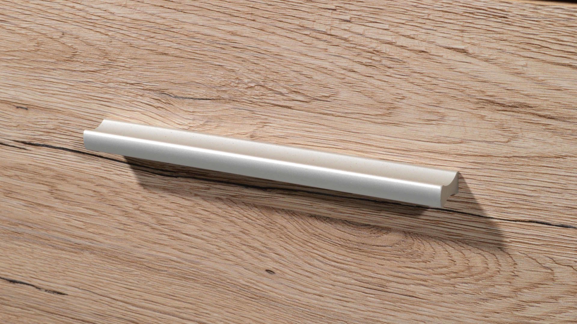 Die moderne Schubladenkommode Top verleiht Ihrer Wohnung ein besonderes Ambiente. Der Schrank in Sanremo Eiche-Nachbildung hat vier Schubladen. Die unteren drei sind gleich groß, die oberste ist etwas weniger hoch. Alle vier sind mit aufgesetzten metallfarbenen Griffleisten versehen.