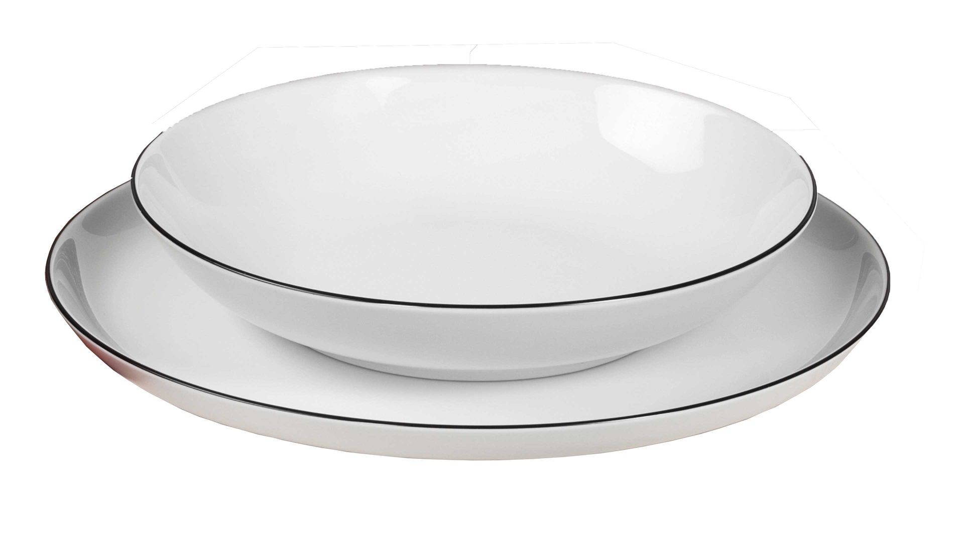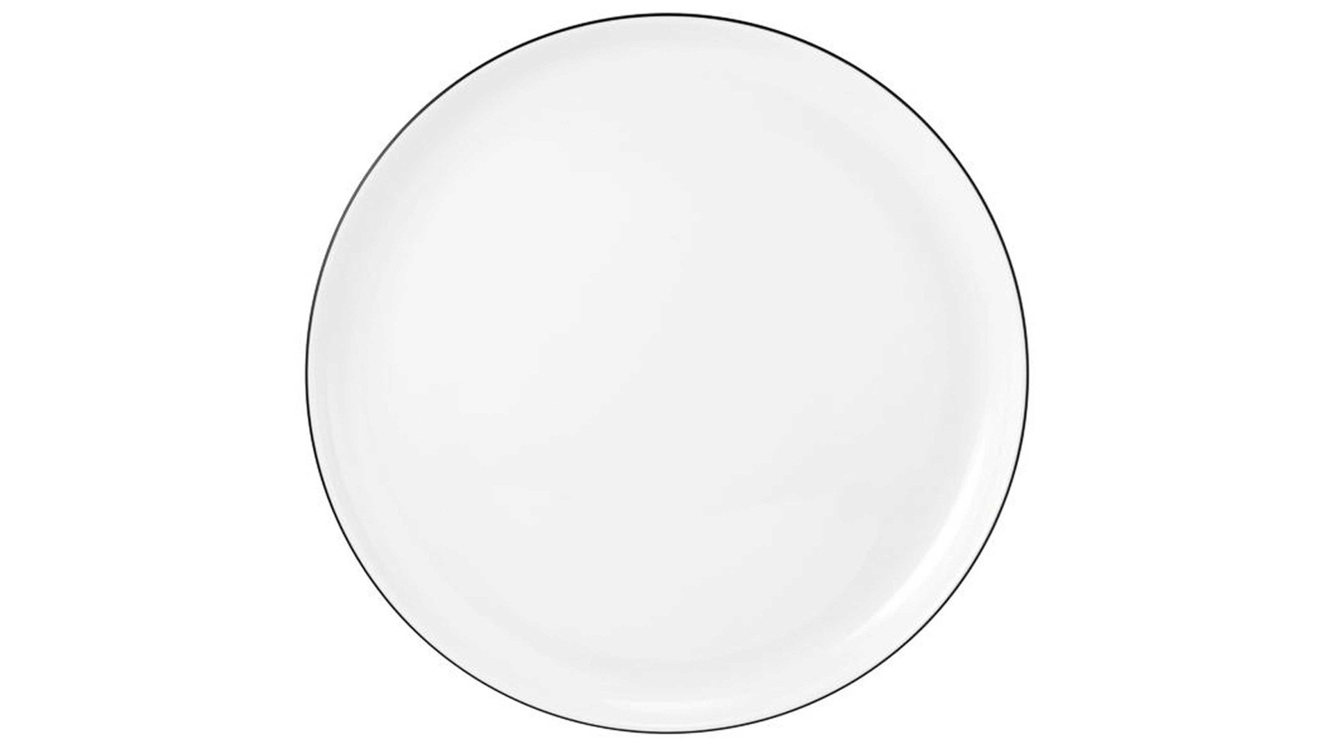 Das zwölfteilige Tafelservice Lido von Seltmann setzt sich aus sechs runden Speisentellern und sechs runden Suppentellern zusammen. Jeder Speisenteller hat einen Durchmesser von ca. 26 cm; bei den Suppentellern beläuft sich der Durchmesser auf ca. 21 cm. Alle Teller sind aus hochwertigem, weißem Porzellan hergestellt. Dessen stilvolle Optik sorgt in Kombination mit der feinen schwarzen Linie im Bereich des Tellerrands für eine durch und durch elegante Erscheinung, die den Esstisch ziert.