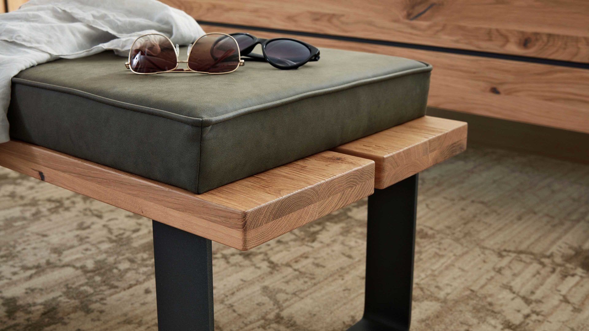 Stylisch sitzen und bequem verstauen – Interliving Schlafzimmer Serie 1019 Bettbank