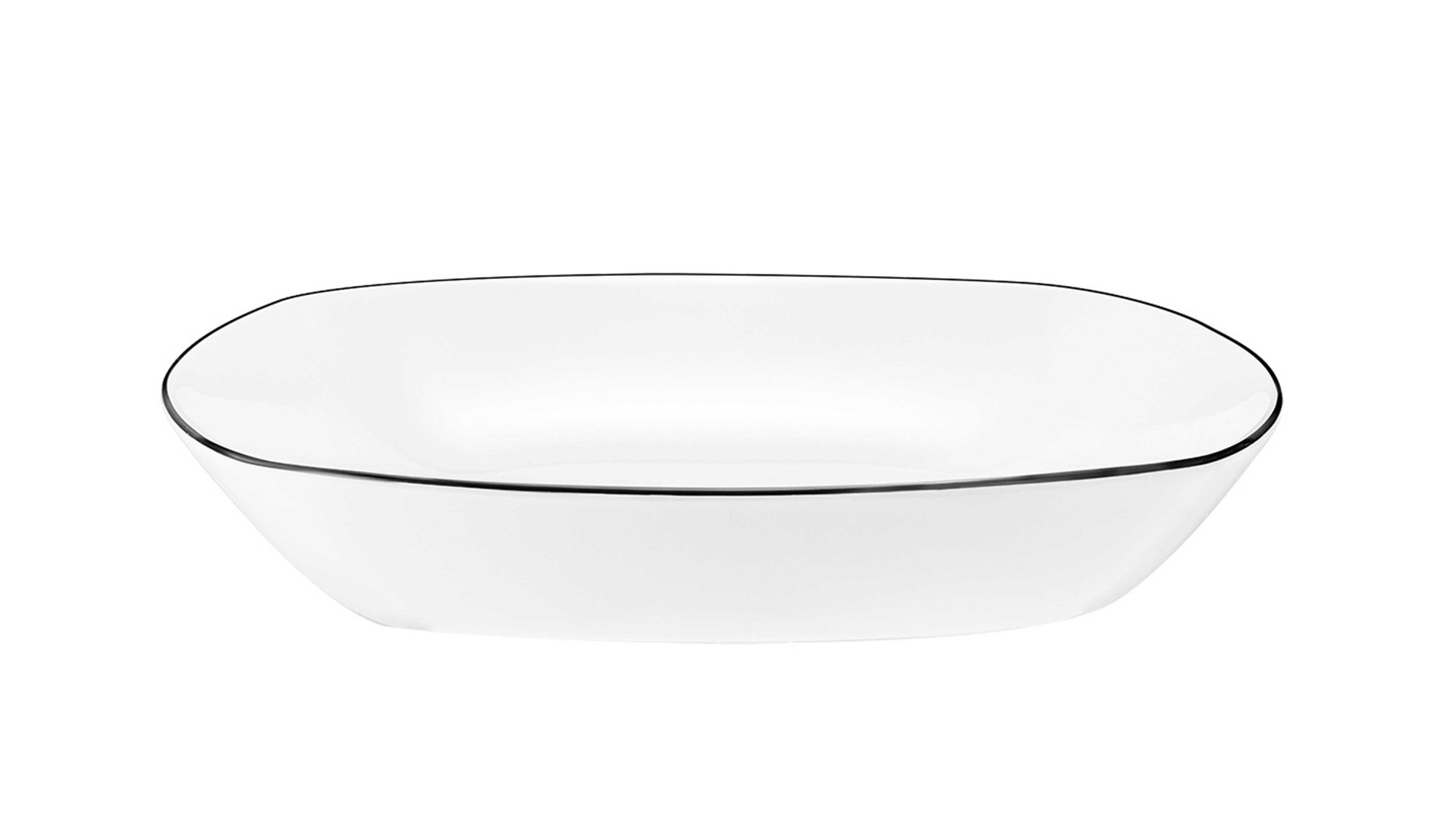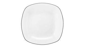 Das zwölfteilige Tafelservice Lido von Seltmann setzt sich aus sechs eckigen Speisentellern und sechs eckigen Suppentellern zusammen. Jeder Speisenteller hat einen Durchmesser von ca. 26 cm; bei den Suppentellern beläuft sich der Durchmesser auf ca. 21 cm. Alle Teller sind aus hochwertigem, weißem Porzellan hergestellt. Dessen stilvolle Optik sorgt in Kombination mit der feinen schwarzen Linie im Bereich des Tellerrands für eine durch und durch elegante Erscheinung, die den Esstisch ziert.