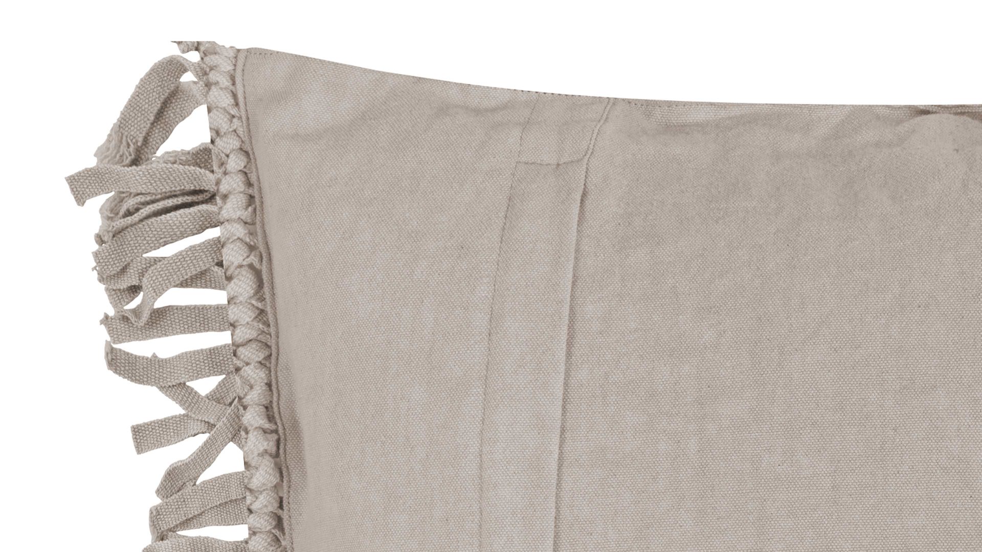 MAGMA Kissenhülle Fringe | taupefarbene Baumwolle | Stone washed, besonders weiche Qualität | Füllung nicht im Lieferumfang enthalten | mit verdecktem Reißverschluss | glatt verarbeitete Rückseite | Handwäsche | Maße ca. 45 x 45 cm (BxL) | geprüfte Öko-Tex Qualität