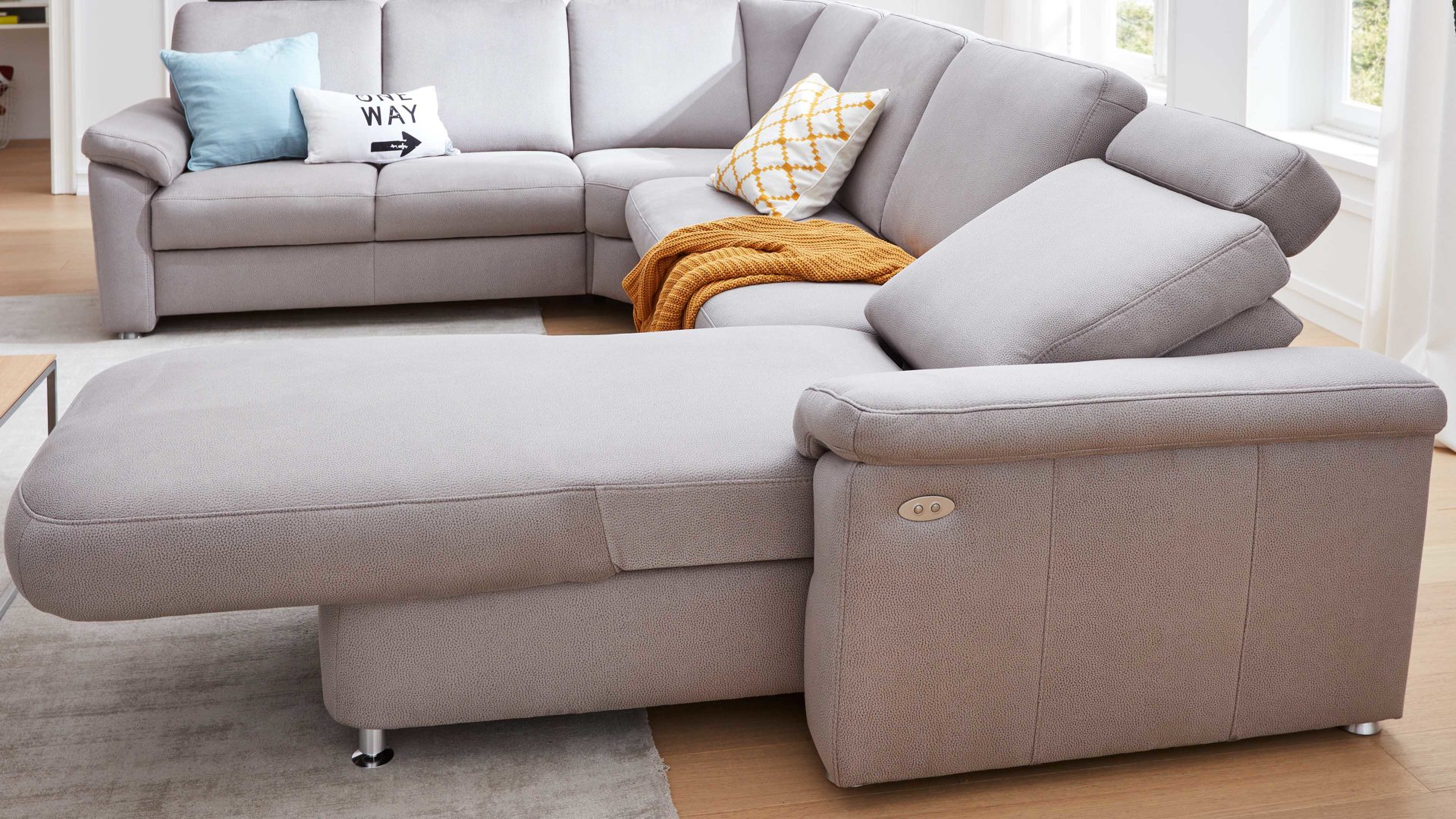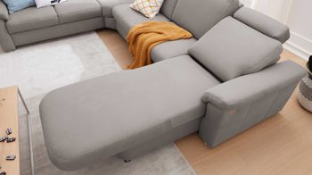 Die motorische Verstellung für die Recamiere bietet Ihnen weiteren Komfort: mit einem bequemen Knopfdruck bringen Sie sich in Liegeposition. Und wenn die Funktion nicht mehr benötigt wird, fährt die Liegefläche ebenso leicht mit Knopfdruck zurück.