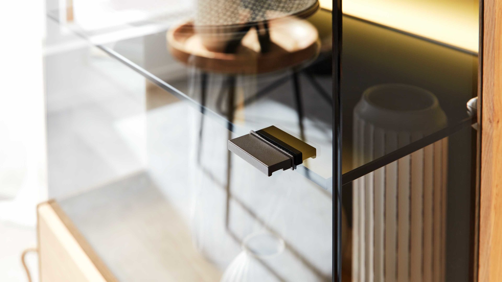 Wie alle Möbel der Serie wird auch die Vitrine der Interliving Wohnzimmer Serie 2020 in Deutschland gefertigt und steht für erstklassige Qualität, Nachhaltigkeit und Flexibilität in der Planung. Du hast die Wahl zwischen Asteiche natur oder bianco geölt, drei Farbglasvarianten und zwei eleganten Griffausführungen – so kannst du dein Möbelstück perfekt an deinen Stil anpassen.