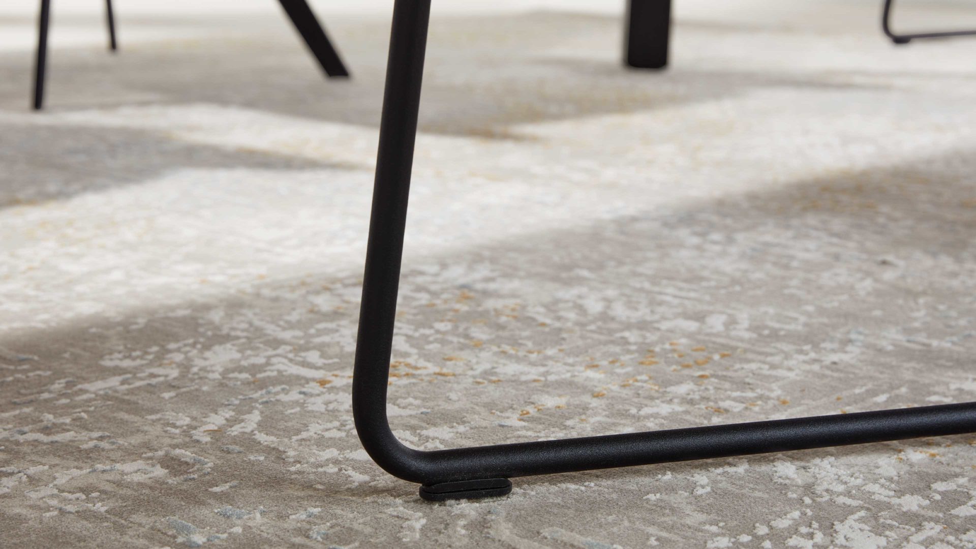 Das schwarze Eisen-Kufengestell sorgt für Stabilität und bildet einen modernen Kontrast zur weichen Polsterung. Sitz und Rücken sind mit Kaltschaum leger gepolstert, wodurch der Sessel besonders bequem ist. Leichte Faltenbildung ist hierbei materialbedingt und betont den legeren, entspannten Charakter des Designs.