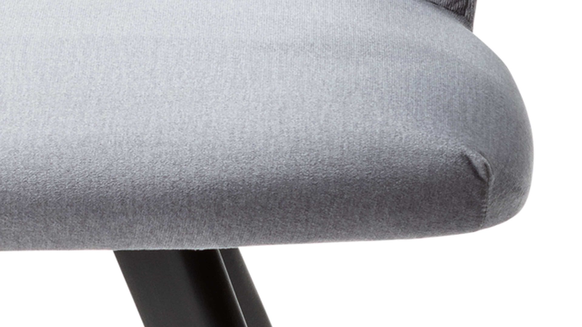Der Polsterstuhl Eldar präsentiert sich modern und extravagant designt. Zudem ist er hochwertig verarbeitet und ungemein bequem. Mit der gelungenen Kombination aus dem edlen grauen Stoffbezug und dem schwarz lackierten Buchenholzgestell strahlt der Stuhl noble Eleganz und einladende Gemütlichkeit aus. Für das gewisse optische Etwas sorgt die aufwendig gesteppte Rückenlehne.