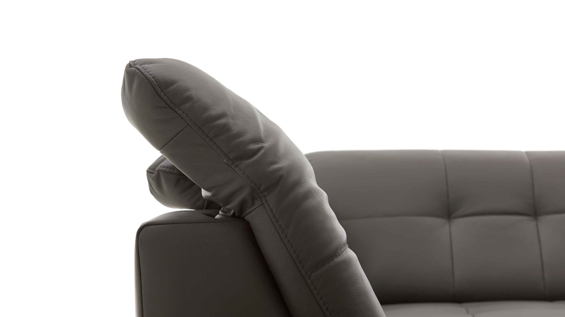Die Kopfpolsterverstellung mit Faltenoptimierung ist ein Funktions-Mehrpreis für verschiedene Möbel aus dem Modulmaster-Polsterprogramm MM-PN1078. Mittels Rasterbeschlag können Sie das Kopfteil manuell mehrfach verstellen, sodass die Gesamthöhe der jeweiligen Couch von ca. 85 bis 100 cm variiert.