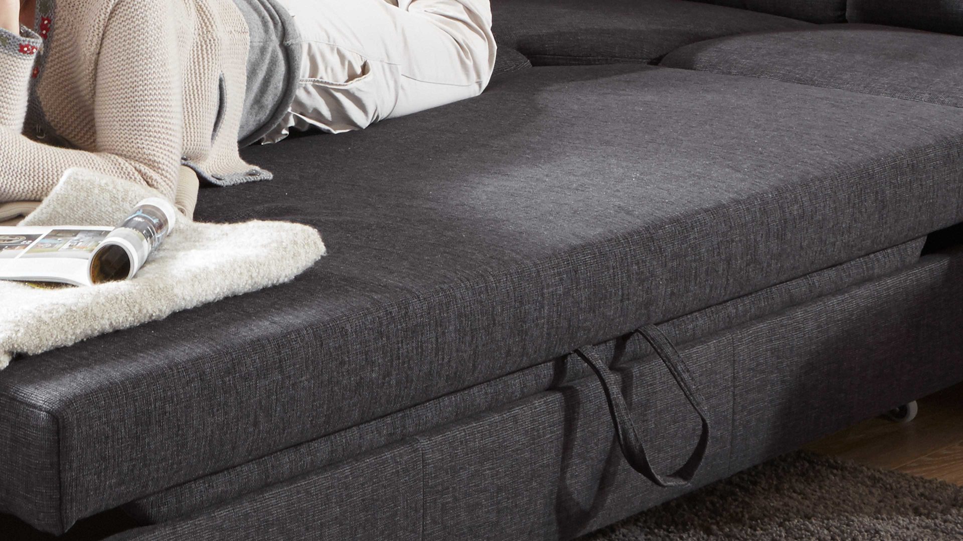 die Sitzfläche wird nach vorn und leicht nach oben zur Liegefläche ausgezogen