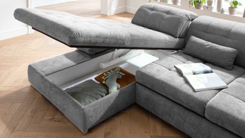 nach Wunsch zusammenstellbare Polstermöbel und mit manuellen oder motorischen Funktionen und anderen Extras ergänzbar