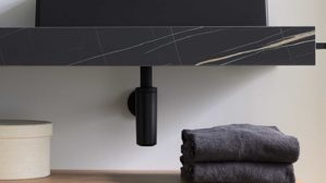 • Die Abbildung zeigt ein Wohnbeispiel, welches auch Dekoration sowie separat erhältliches Zubehör enthält. Im Lieferumfang enthalten sind ein Waschbecken, eine Konsole und ein Siphon.